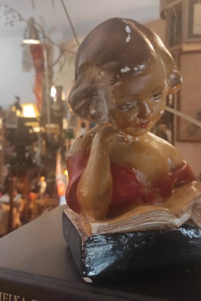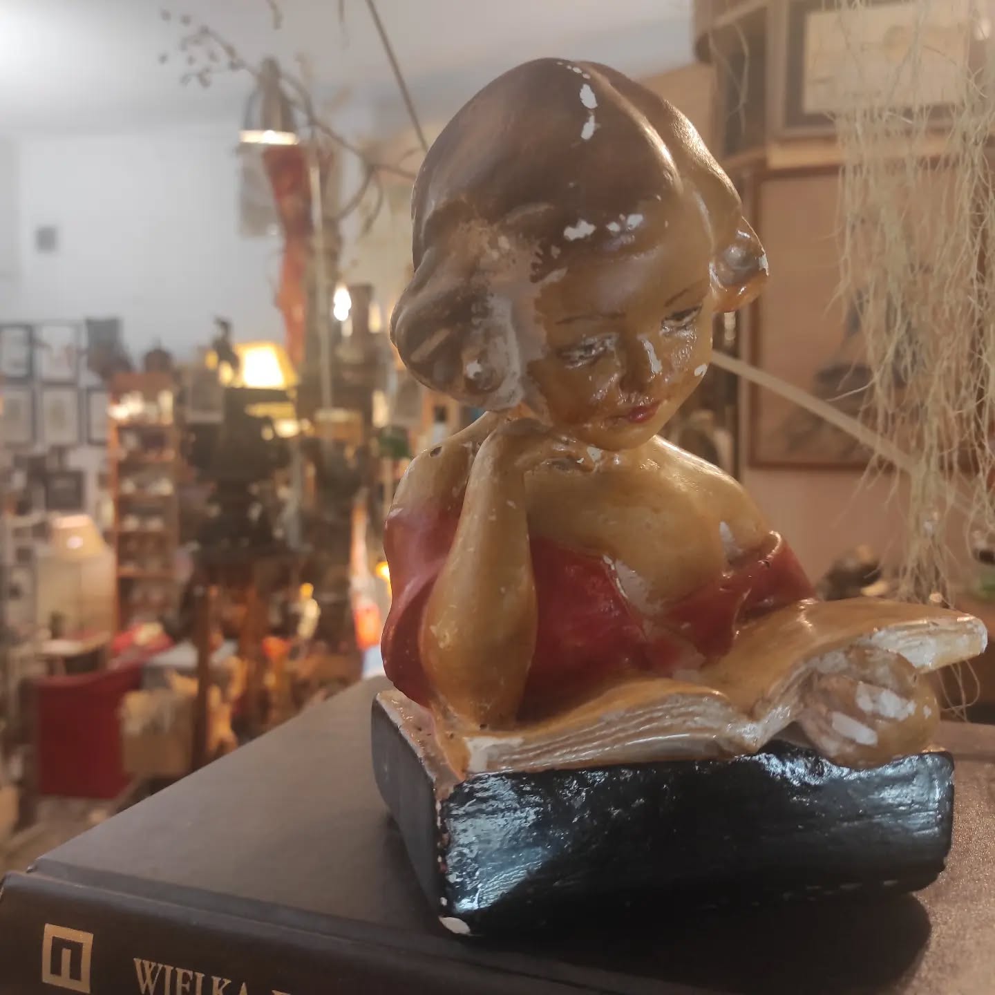 Figurki postaci z książką – antyki z porcelany, brązu, srebra i innych materiałów.