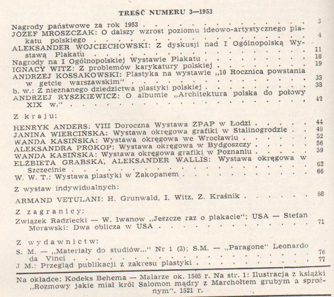 Czasopismo Przegląd artystyczny 3/1953 [Plakat polski, Karykatura, Getto, Zakopane]