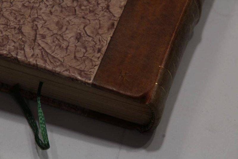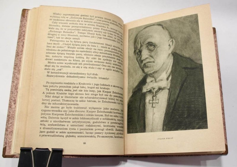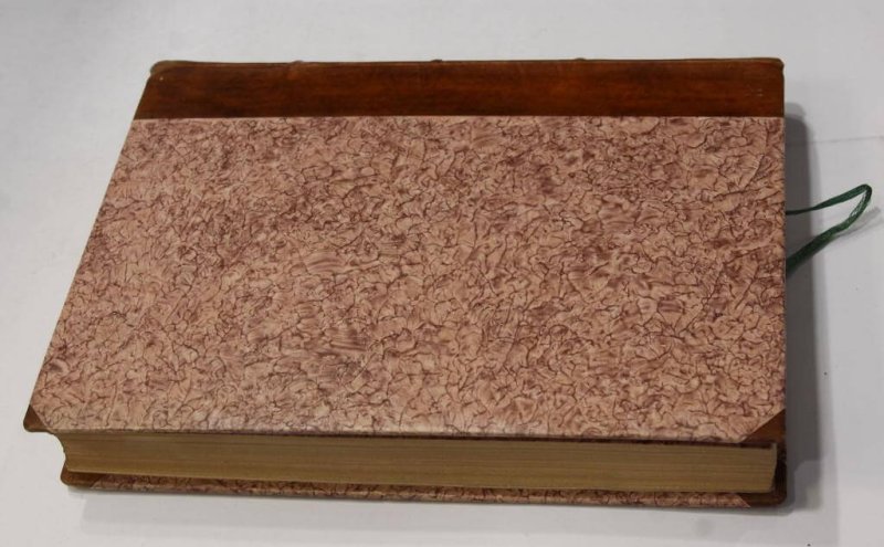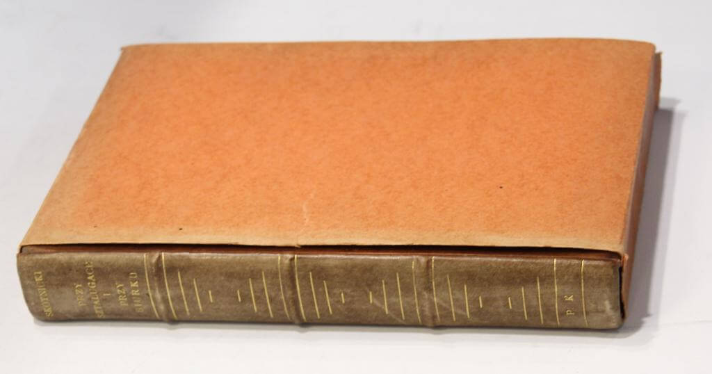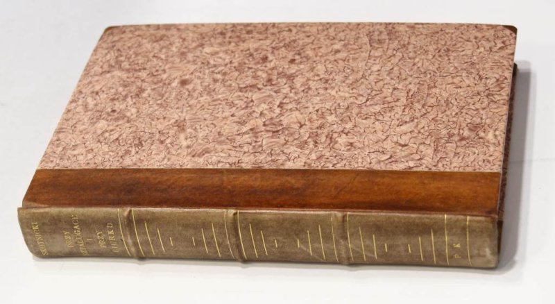Oprawa Heleny Karpińskiej – półpergaminowa z pap. marmurkowym z bindami i złoceniami na grzbiecie oraz monogramem P. K. – Piotr Karpiński – syn Heleny, artysta malarz, barwiona, sygnowana suchym tłokiem na odwrocie, dołączone etui broszurowe