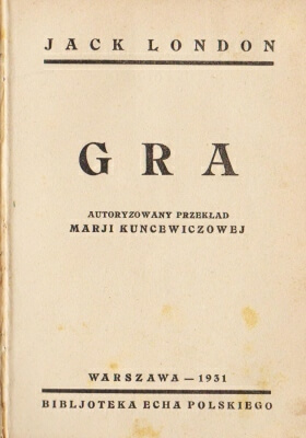 London Jack, Gra, Bibljoteka Echa Polskiego, Warszawa 1931, 128 s., s. db, dedykacja, o. półpłócienna int.