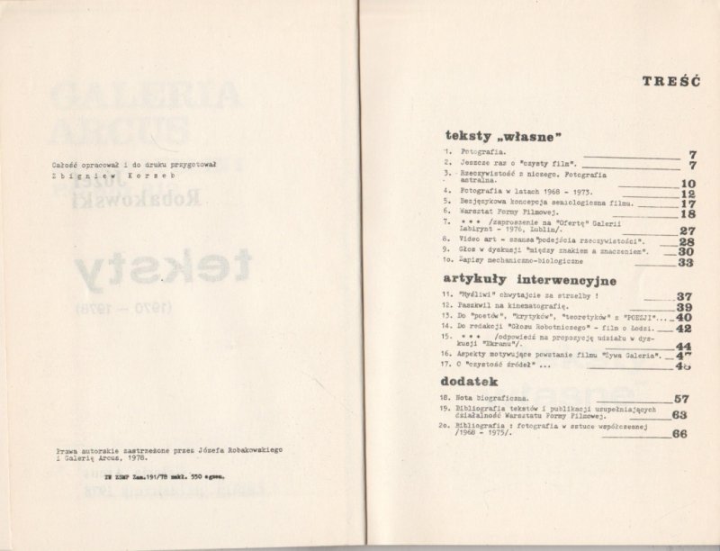 Robakowski Józef, Teksty 1970 – 1978. Wypisy ze sztuki, Lublin 1978, Galeria Arcus, 67s., s. bdb, for. ca: 20×15 cm, MAGAZYN I