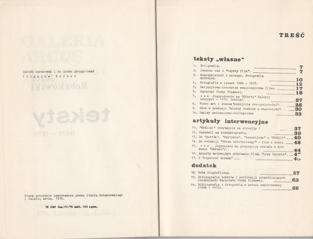 Robakowski Józef Teksty 1970 – 1978. Wypisy ze sztuki 404013.