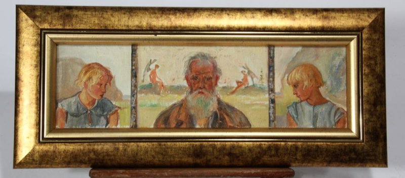 olej, płótno, tektura, 10 x 31 cm, sygnowany na środkowej części tryptyku monogramem: WH