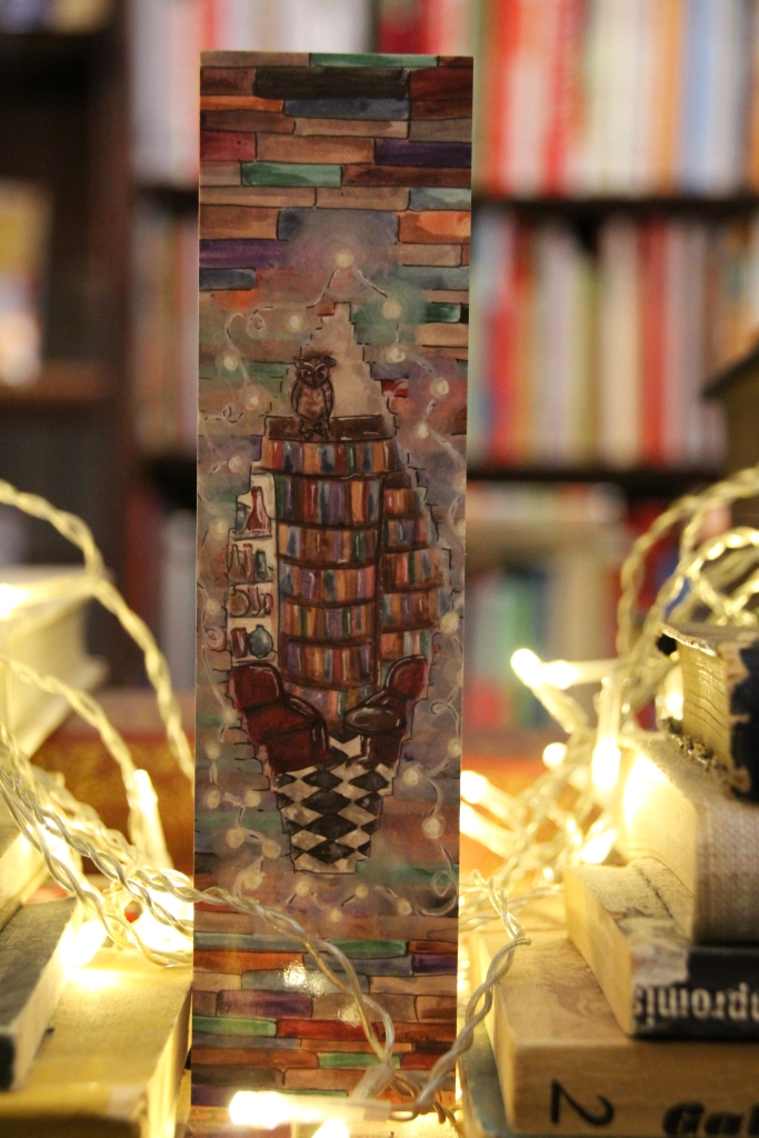 AWERS – został narysowany przez tą samą młodą damę, która narysowała nasza pierwszą zakładkę. Przedstawia wnętrze antykwariatu – na pierwszym planie znajduje się rzeźba poświęcona ofiarom/miłośnikom książek widać przez nią nasze sofy, witrynę i półki z książkami… Prawda, że jest piękna i będzie miło zaczynać lekturę od jej widoku?